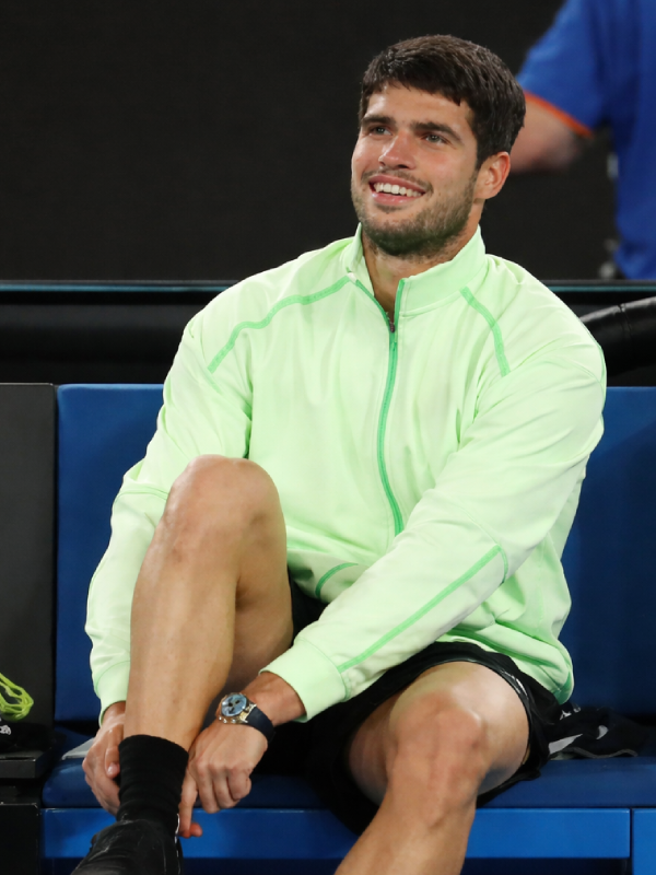 The Australian Open Carlos Alcaraz Jacket showcases a sleek athletic look inspired by the dynamic presence of Carlos Alcaraz at the Australian Open. Its green color adds a fresh energetic touch that complements both sporty and casual outfits.