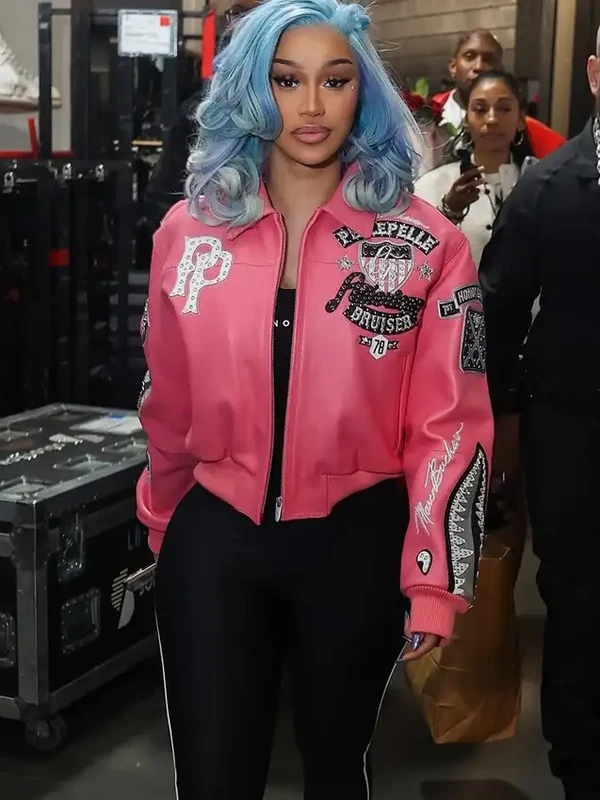 The Bodega Baddie Cardi Pink Bomber Leather Jacket is a high-energy tribute to the Bronx-glam aesthetic popularized by global superstar Cardi B. Following her viral 2026 streetwear campaign, this jacket captures the essence of Bodega Baddie culture a blend of raw city grit and unapologetic, high-fashion luxury. The vibrant pink hue is a direct nod to her signature bold palette, making it an essential statement piece for those looking to dominate the street style scene.