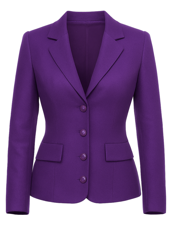 Featuring a button style front and a classic lapel collar this blazer exudes a polished statement making silhouette. The purple shade ensures a unique and trendy look making it an ideal choice for smart casual and expressive trendy fashion.