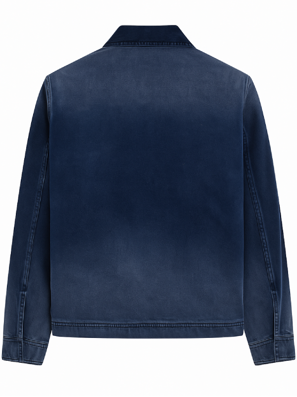 Designed with a zipper front and a shirt style collar this jacket delivers a balanced look that feels both structured and effortless. Full length sleeves and a timeless blue color complete the design making it a versatile layering piece for modern off duty styling.