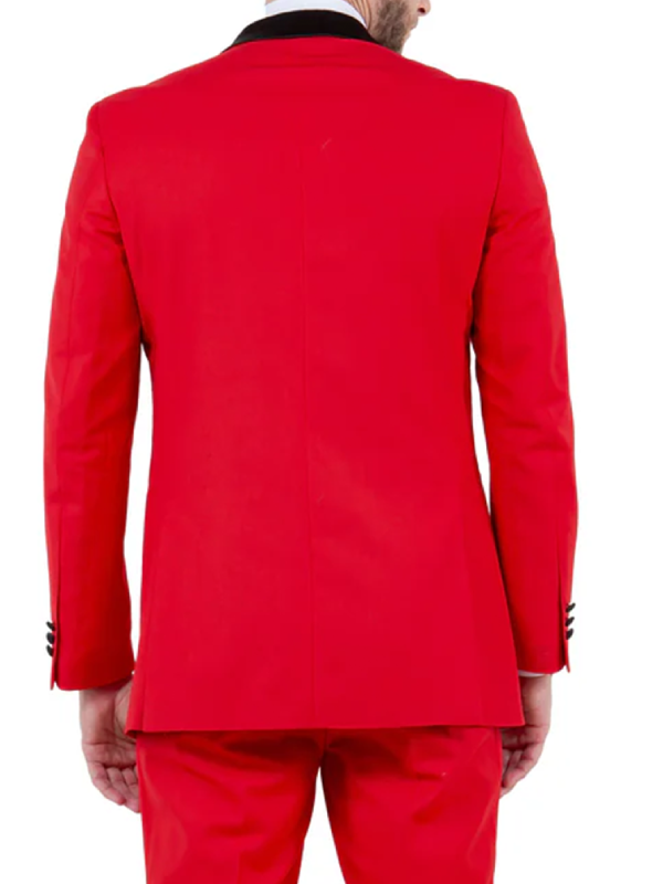 A bold red blazer steps into the spotlight shaped by candlelit ballrooms and crisp December nights. Holiday spirit hums through its fabric tied not to trends but to quiet moments between dances and whispered greetings. Sharp lines meet soft traditions building a look that lingers in memory without trying too hard.