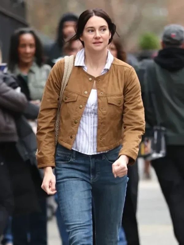 Expertly constructed from cotton with a internal polyester lining, this jacket is engineered for a lightweight feel and breathable comfort during the spring season. The design features a contemporary round neck collar and a traditional front button closure, providing a streamlined and feminine silhouette that is perfect for layering. Built for everyday practicality, the jacket includes full-length sleeves and a functional pocket layout, ensuring a versatile balance of utility and a polished cinematic finish. Finished in a warm and sophisticated brown colorway, this Shailene Woodley inspired jacket is a definitive must-have for fans of the film and seekers of a dependable, high-quality wardrobe staple.