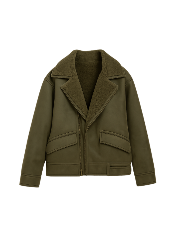 Designed with a buttoned front and a plush shearling collar this jacket delivers a standout silhouette with added warmth. The green color adds depth and individuality making it a stylish choice for casual wear and statement winter outfits.