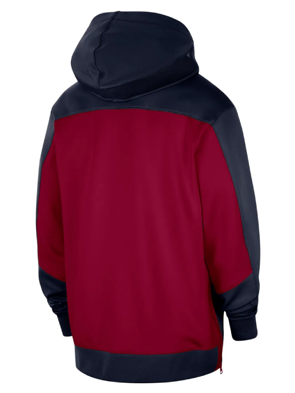 In red and blue this jacket comes complete with a front zip closure and hooded collar to create a laid-back yet sporty silhouette. Full sleeves have rib knit cuffs ensuring a good fit while the two side pockets offer practicality. It’s everything one could want a team inspired design bright colors and multi use style for casual wear and game day looks.
