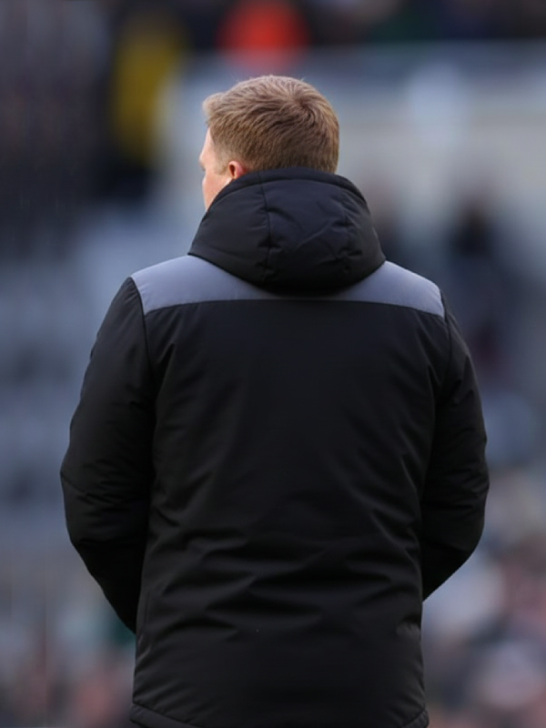 A shadow moves through matchday decisions it shapes the Eddie Howe black jacket. Tactical calm under bright lights gives it form. Not flash but purpose stands out. Sharp lines come from dugout precision built for movement yet holding stillness. Deep black behaves differently here: less void more statement.