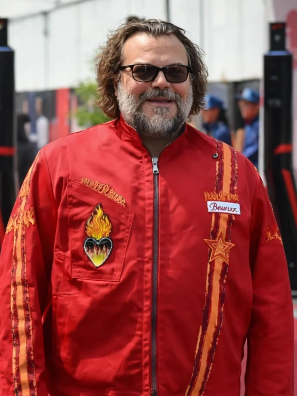 The F1 Grand Prix 2026 Jack Black Jacket is a high-energy piece of apparel that captures the legendary actor’s larger-than-life presence on the global racing stage. In March 2026, Jack Black joined his The Super Mario Galaxy Movie co-stars Chris Pratt and Anya Taylor-Joy at the Suzuka Circuit for the Formula 1 Aramco Japanese Grand Prix. Spotted in the Ferrari garage and along the starting grid, Black sported this vibrant red jacket as he celebrated the film’s international press tour and met with racing icons like Lewis Hamilton.