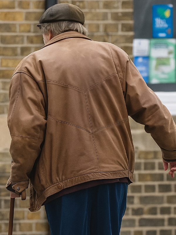 Bernie Goodbye June 2025 Timothy Spall Brown Leather Jacket