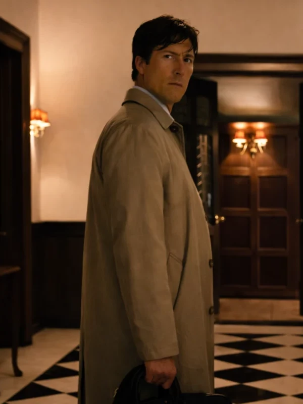 How to Make a Killing Glen Powell Becket Redfellow Beige Coat