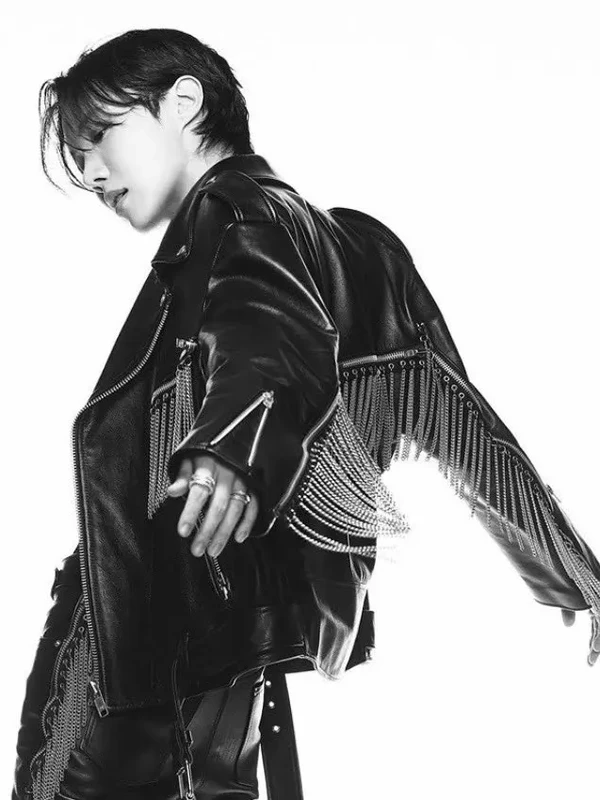 The J Hope Arirang Cover Black Fringe Jacket is a standout piece inspired by the artist’s electrifying solo performance during the 2026 Arirang world tour. As a central figure in the group’s grand comeback, J-Hope’s wardrobe for the tour dubbed the Sorikkun or traditional storyteller aesthetic blends high-octane streetwear with avant-garde details. This fringe-embellished jacket specifically captures his dynamic stage presence, moving fluidly with every choreography-heavy set.