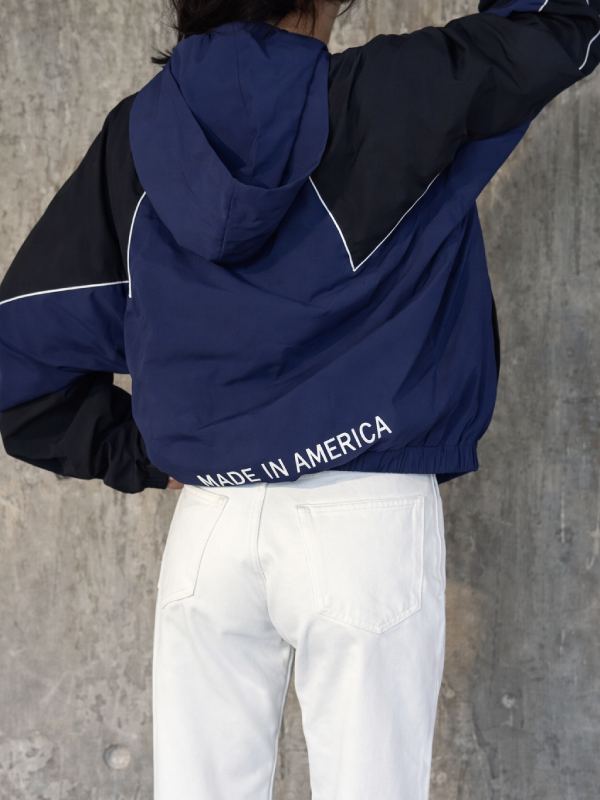 Constructed from Cotton Polyester with Polyester Lining, this jacket features a smooth Zipper Closure paired with a functional Hooded Collar. Full Length Sleeves finished with Elastic Cuffs keep the outline neat, while Two Side Waist and One Inner Pockets add practical storage. Finished in Blue and Black, the piece offers a composed, modern appearance suited for regular styling.