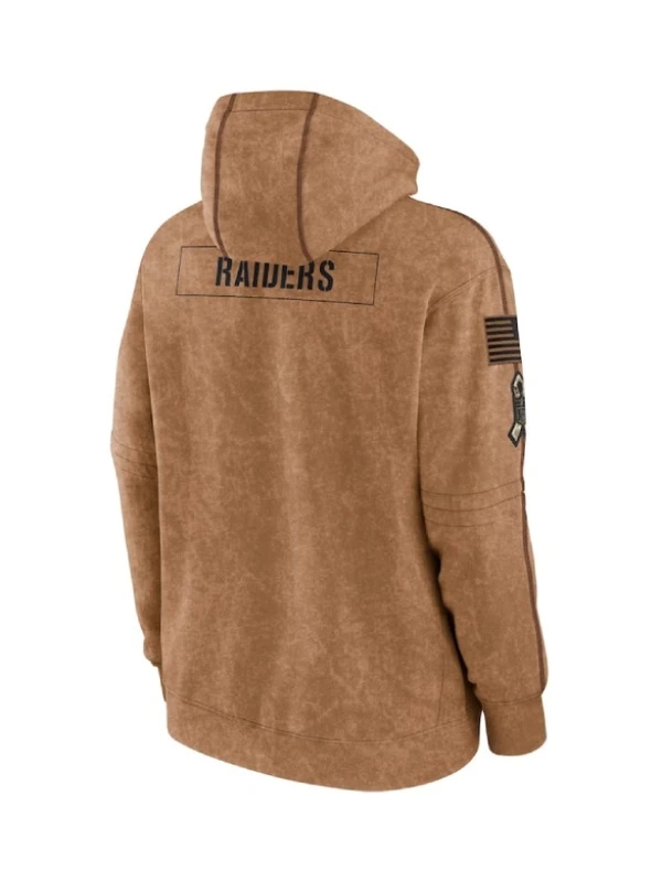 The Las Vegas Raiders Salute To Service Hoodie is a powerful fusion of gridiron grit and military appreciation, famously part of the initiative to honor service members. During the Raiders’ high-stakes November matchup at Allegiant Stadium, this brown pullover silhouette became the definitive look for players and fans alike, symbolizing a commitment to the “Service, Honor, and Country” campaign.