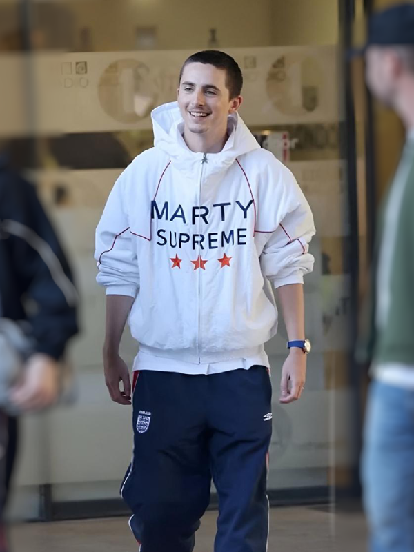 Marty Supreme London Timothee Chalamet White Hooded Jacket