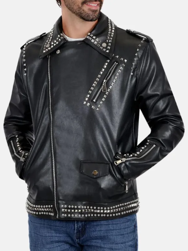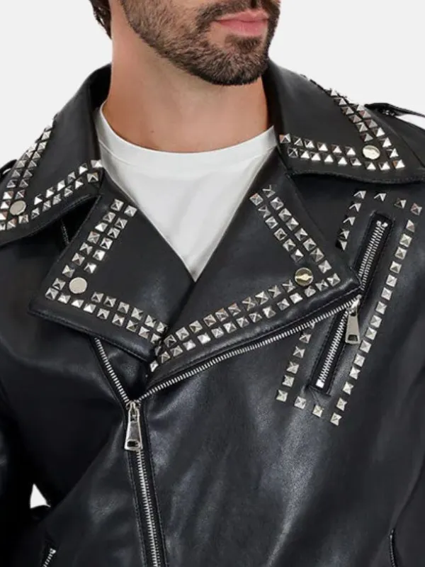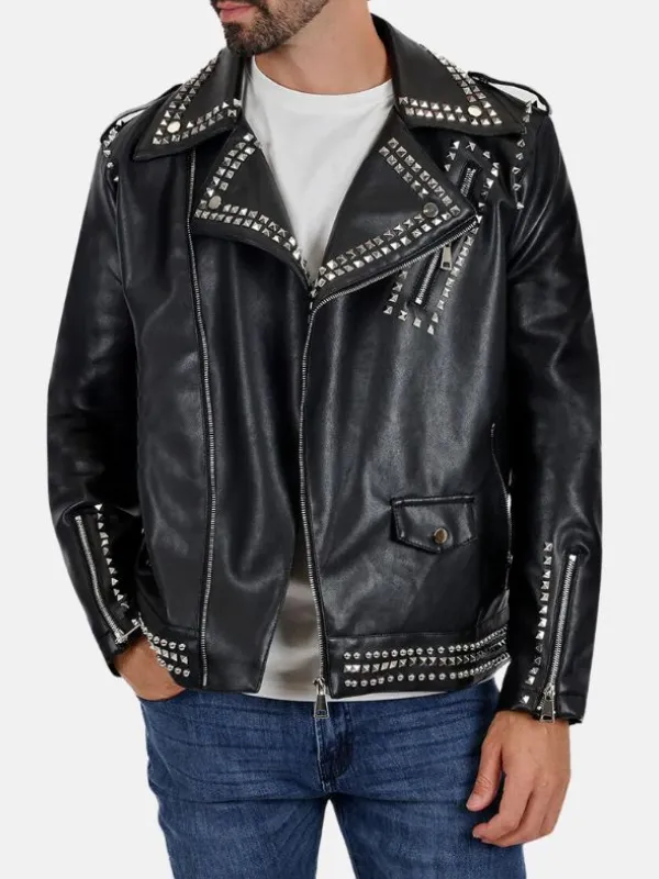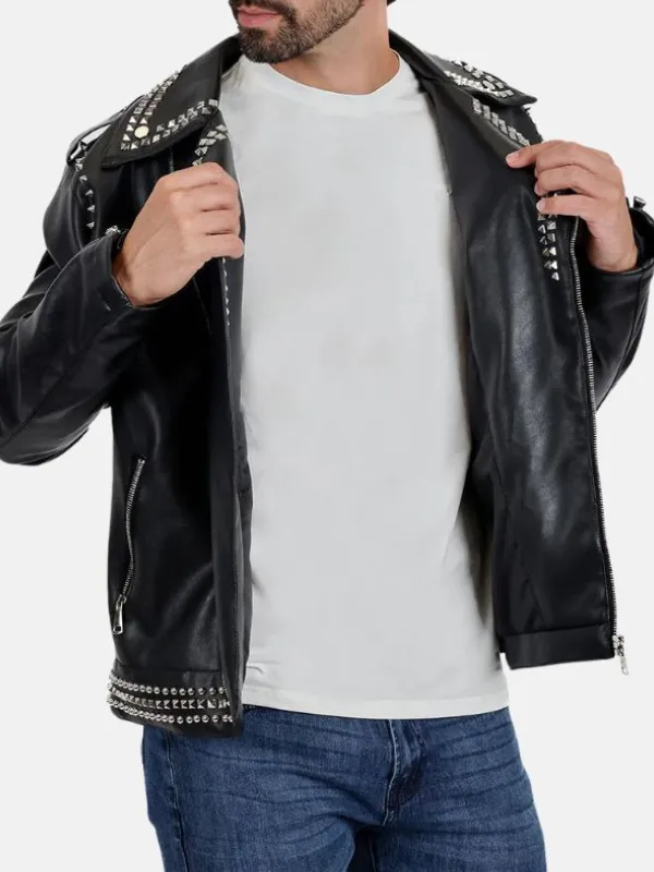 A bold statement begins where comfort ends meet the Men Black Biker Studded Leather Jacket. More than fabric stitched together, it hums with defiance, built for movement and mood. Shape follows attitude: the timeless Brando cut meets sharp metal details, clashing into something raw yet refined.