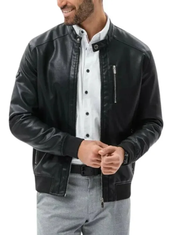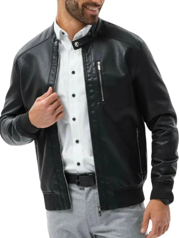 Men Black Cafe Racer Bomber Leather Jacket