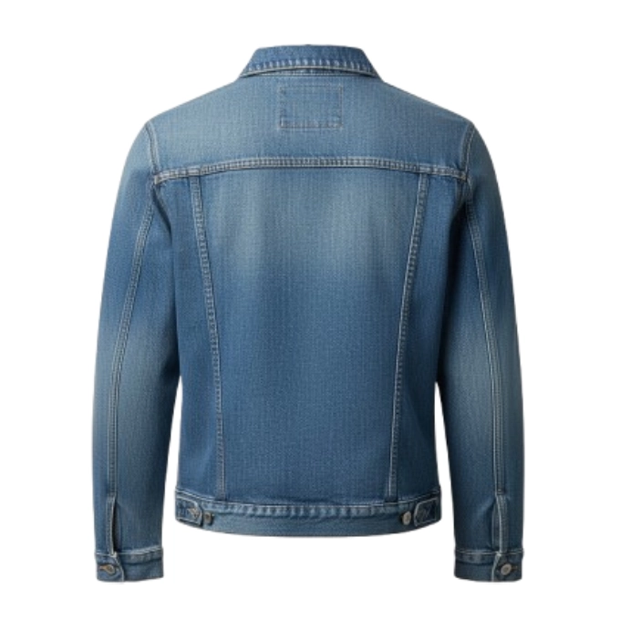 Weeks go by, then the fabric begins to fit just right shaped by your moves, your pace, your life. Built from dense, rugged denim, it keeps its form better than most jackets out there it carries a button up front anchored by strong metal pieces. A crisp collar, cut like a dress shirt’s, sits neatly at the neck simple, firm, yet never stiff.