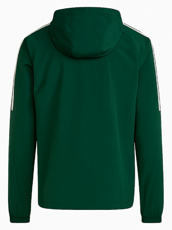 Designed in a fresh green color the jacket features a front zipper closure and a hooded collar adding a practical and athletic edge. Long sleeves with elasticated cuffs provide a secure fit and easy movement. This jacket stands out for its match inspired influence clean design and versatile appeal making it a great choice for casual outings or game day styling.
