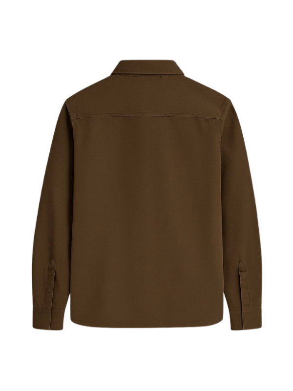 Featuring a button like closure and a classic shirt collar this jacket provides a relaxed yet composed appearance. The brown shade provides a warm and versatile look making it simple to incorporate into casual fashion and a subtle screen inspired design.