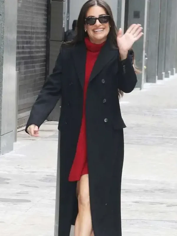 New York City 2026 American Singer Lea Michele Black Wool Coat