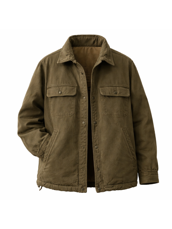 This jacket with its button style front and classic shirt style collar provides a sleek yet casual appearance. Full length sleeves and a brown color also make this jacket versatile and allow it to be a good layering piece.