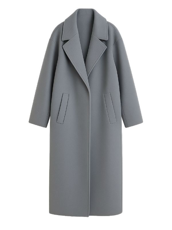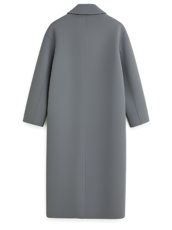 Featuring a classic lapel style collar and full length sleeves this coat provides a graceful and confident look. Open hem cuffs add to its relaxed look while the grey color provides versatility to this coat making it a perfect choice for formal and sophisticated winter fashion.