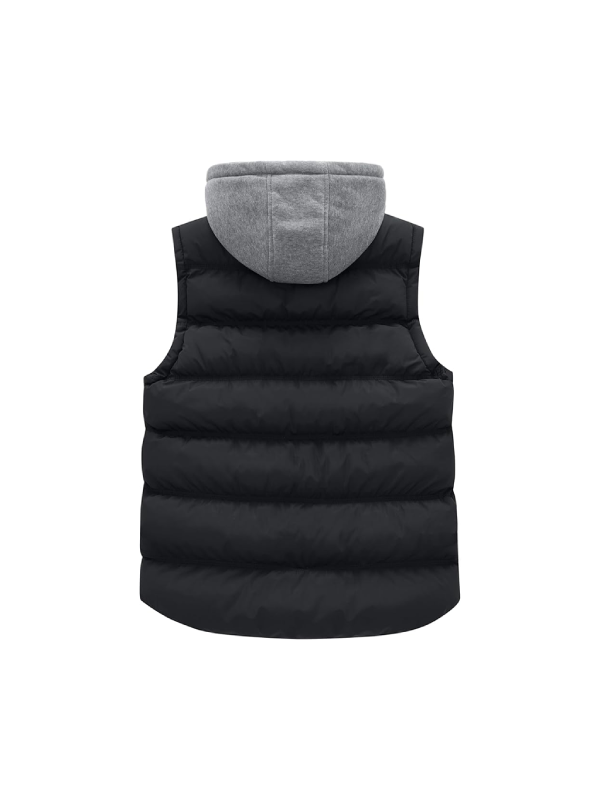 Made from Parachute with Polyester Lining, this vest includes a Button & Zipper Style front paired with a functional Hooded Collar. Half Sleeves give it a relaxed, adaptable structure. Finished in Black, the piece maintains a clean, minimal appearance suited for casual and street-focused looks.