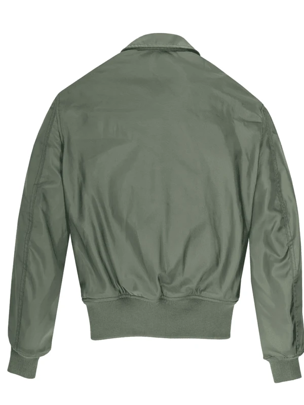 This flight jacket is expertly fashioned from a cotton fabric and supported by a internal polyester lining, ensuring a lightweight yet substantial feel suitable for year-round wear. The construction features a classic shirt-style collar and a sleek front zipper closure, providing a structured silhouette that is both functional and sharp. For essential utility, the garment is equipped with a practical three-pocket layout—including two outer pockets for quick access and one secure inner pocket for personal items. Completed with long sleeves and snug rib-knitted cuffs to retain its shape, this Lady Gaga-inspired green flight jacket is a must-have for followers of the 2026 aviation-style revival and seekers of a high-quality, film-driven wardrobe staple.