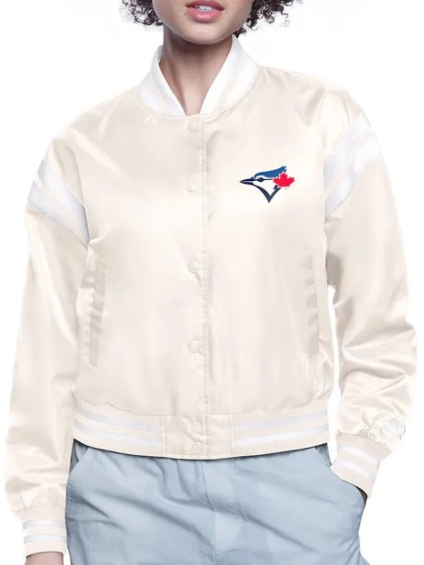 The Toronto Blue Jays Printed Logo Varsity Satin Jacket delivers a fresh take on North of the Border baseball culture, blending a vintage streetwear aesthetic with contemporary color-blocking. In the 2026 fashion cycle, the classic “Blue Jays” identity has evolved beyond the traditional blue and white, with this black and cream palette emerging as a definitive favorite for urban styling. Featuring a bold logo print, this jacket celebrates the energy of the 2026 season at the Rogers Centre while offering a versatile look that bridges the gap between stadium spirit and refined metropolitan fashion.