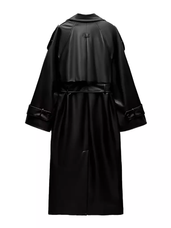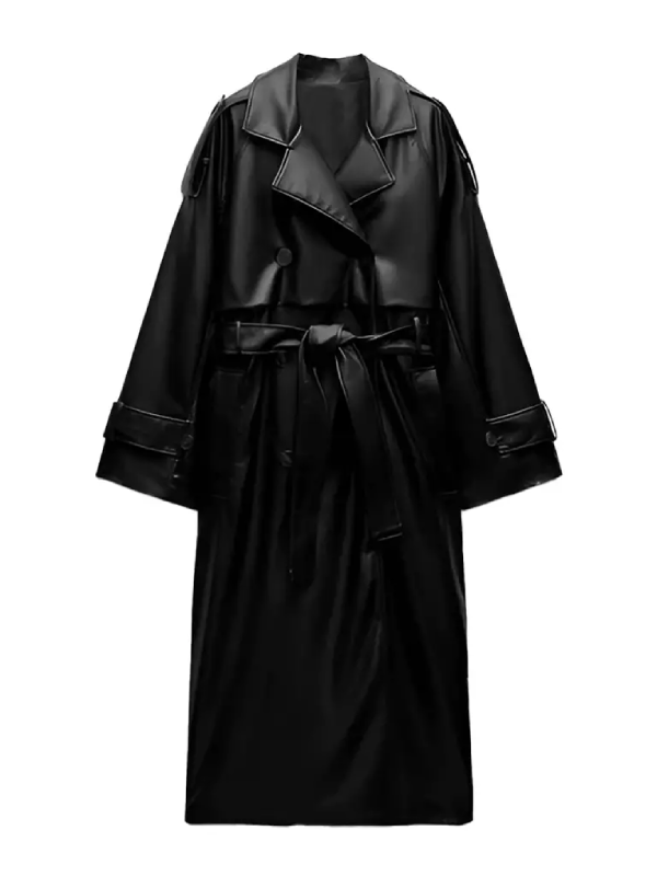 It is made from Leather material that has a Polyester lining. It provides an opulent feel to it. It is designed in such an elegant way that it possesses an exclusive Lapel Style collar design along with an Open Front design that is accompanied by Belt.