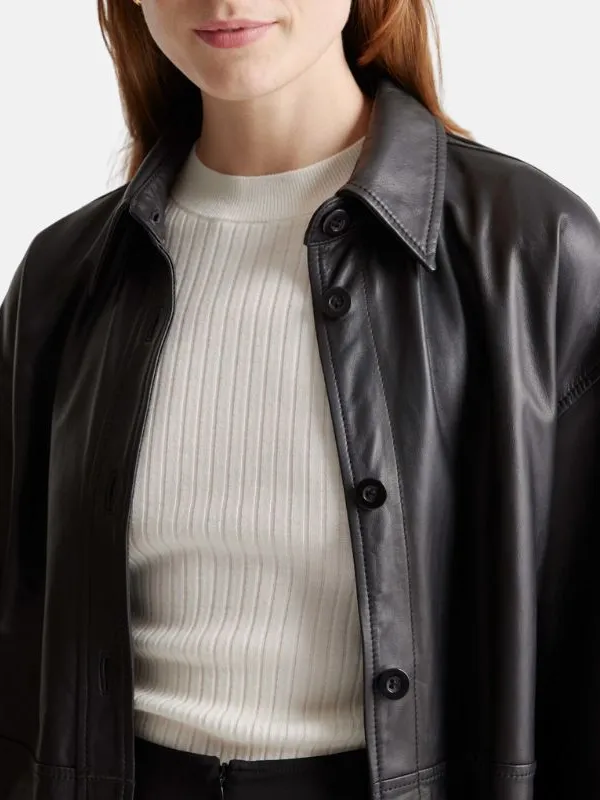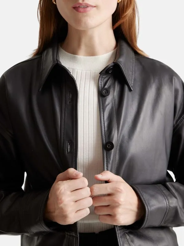 Women Black Leather Shirt Style Jacket