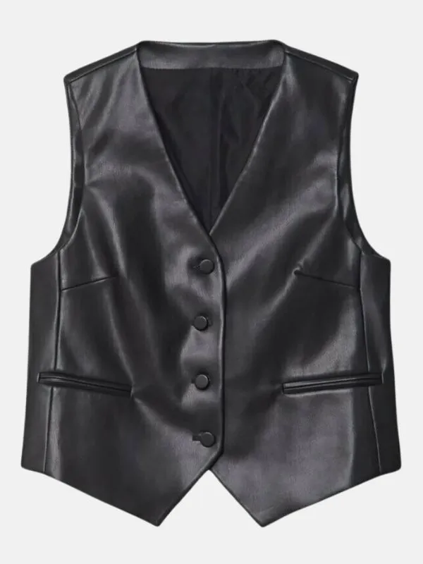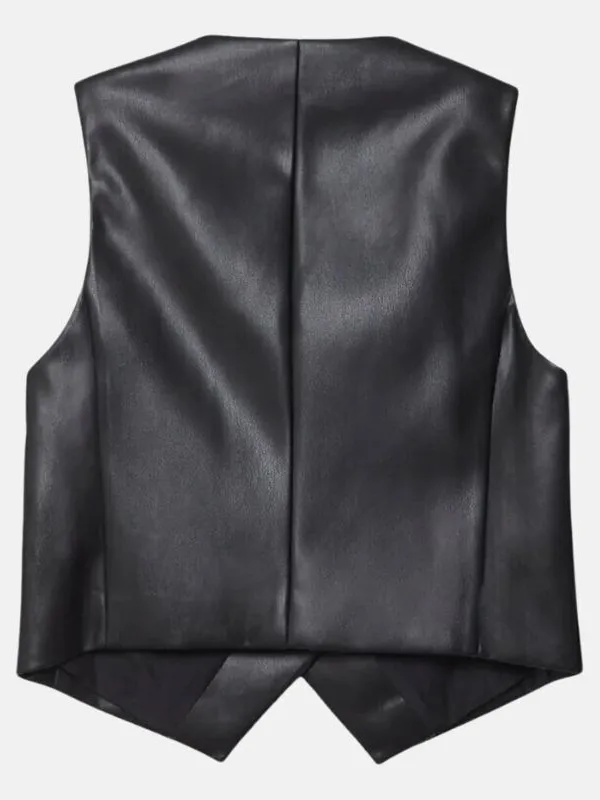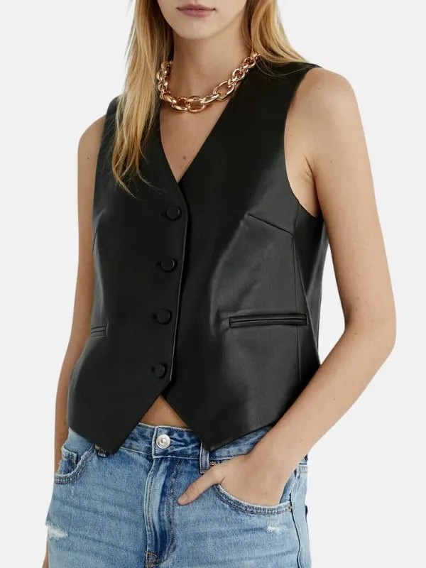 Women Black Leather Vest
