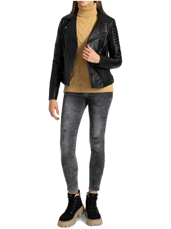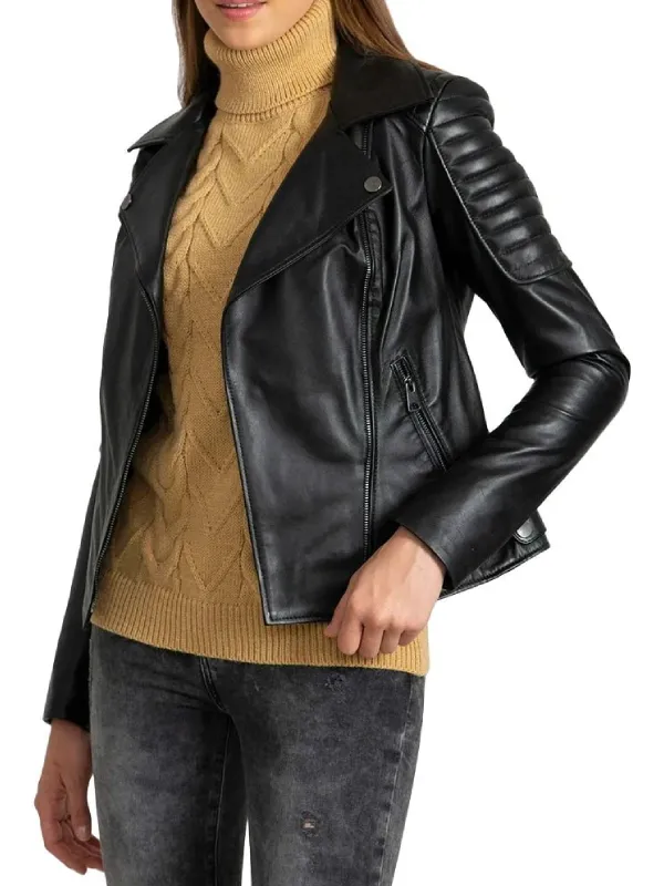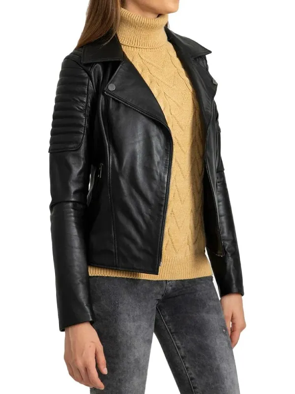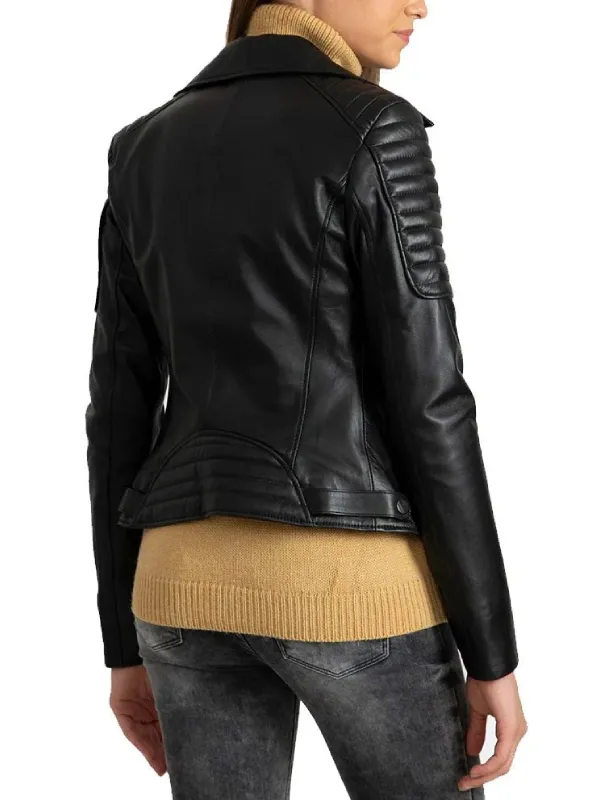 Women Black Quilted Leather Biker Jacket